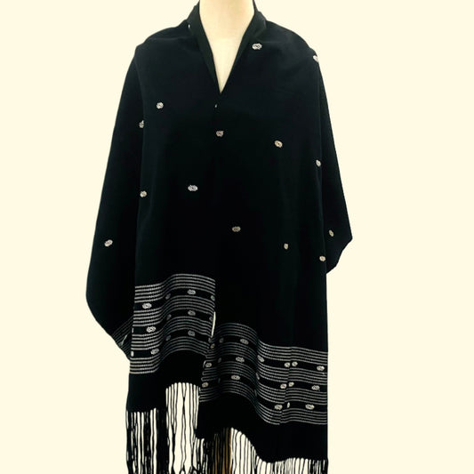 不丹婦女手工織製麻綿黑色大圍巾披肩款 酷款
